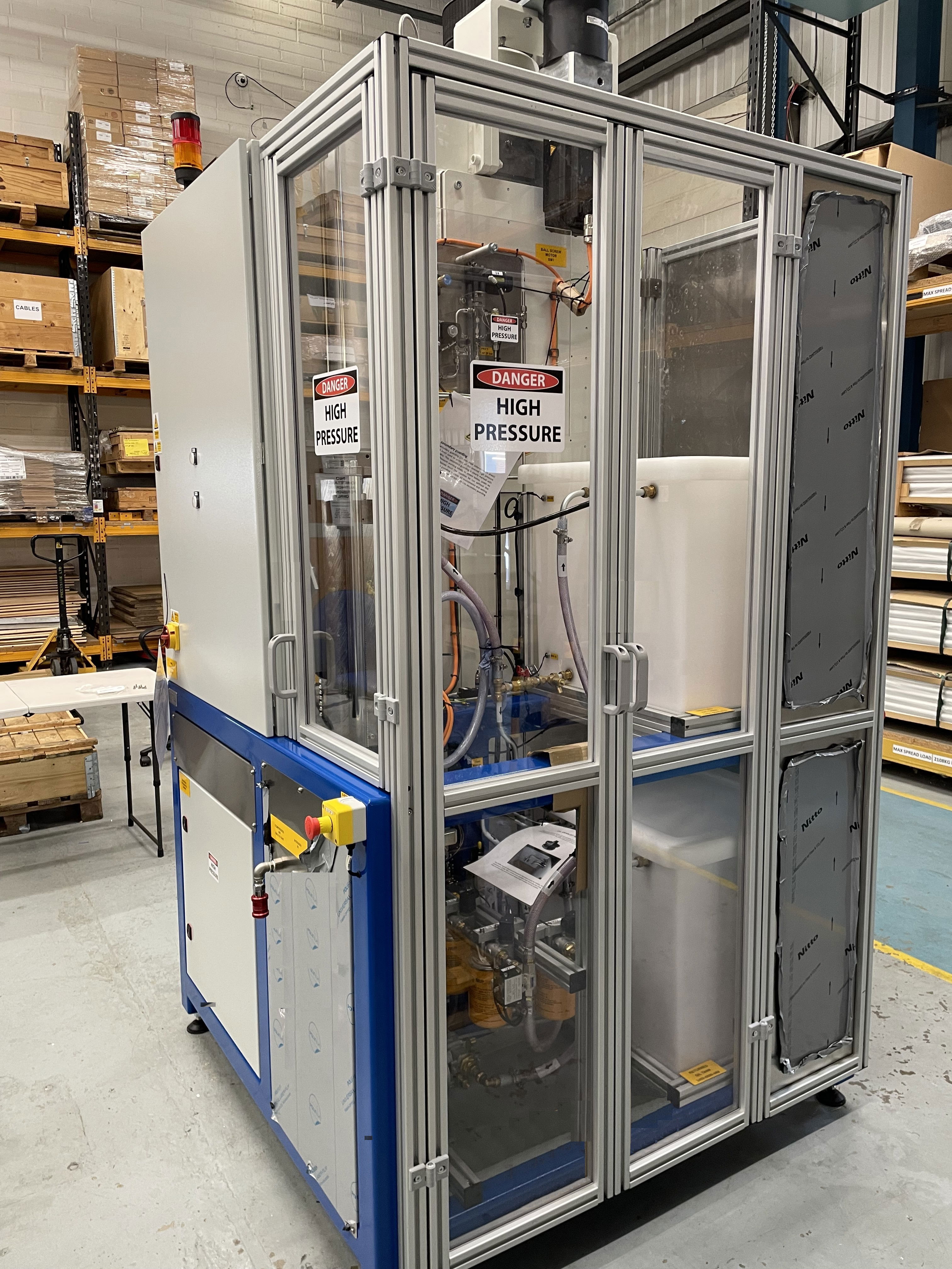 Another high pressure test rig, designed and built by ABP prepped for despatch. This high-integrity fully automated rig, weighing in at 2 tonnes, tests vital components of military vehicles using a combination of hydraulic pumps and high-power electrical drives.